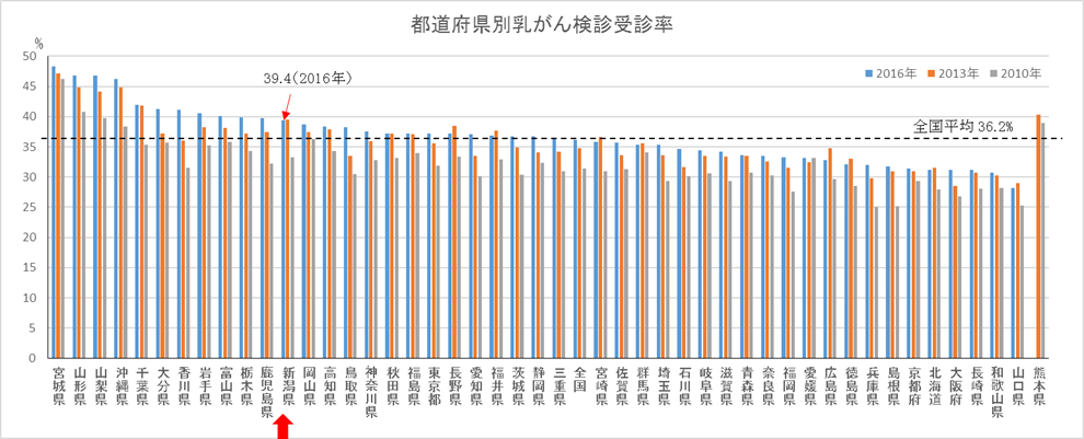 ①新潟県女性のマンモグラフィ検診の受診率向上