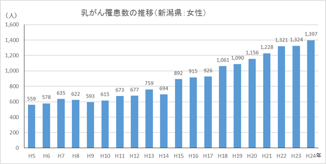 新潟県の女性 乳がん罹患数の推移