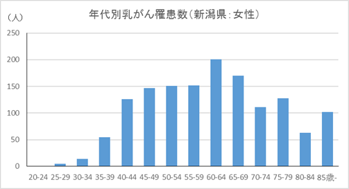 新潟県の女性 年代別乳がん罹患数