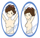 A:撮影の範囲は乳房からわきの下を含めた部分になりますので、撮影の際は、制汗剤やパウダーなどはつけないでください。パウダーなどが付いたまま撮影されますと、がんのサインである石灰化に非常に似て写ることがあります。不要な再検査や必要以上の被ばくを避けるためにもご注意ください。