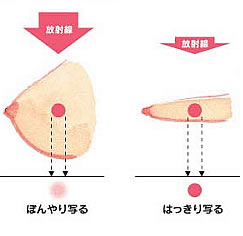 触診では見つからないような小さなシコリや、シコリになる前の石灰化した微細な乳がんの発見に大変有用な検査法です。